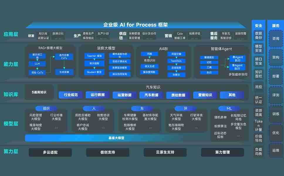 橘子平台问学智车解决方案是一套基于AI技术的汽车行业智能化系统,,,,覆盖从底层算力到顶层AI应用的全栈方案。。。方案由算力层、、、模型层和应用层组成:算力层,,,,方案支持多种一体机配置,,,具备云端灵活部署、、、、多云适配以及动态优化计算资源的能力;模型层,,,,橘子平台问学平台版提供了企业级AI应用一站式构建与管理平台,,,,支持基于后训练强化技术的汽车企业专属模型的训练、、、评测和运营;应用层,,,橘子平台问学DeepSeek版提供包括超级员工、、智能招采、、智能营销、、、智能客服、、、、AI for BI等一系列解决方案,,,可助力汽车行业实现数字化转型,,,让管理更智能、、、、响应更敏捷。。